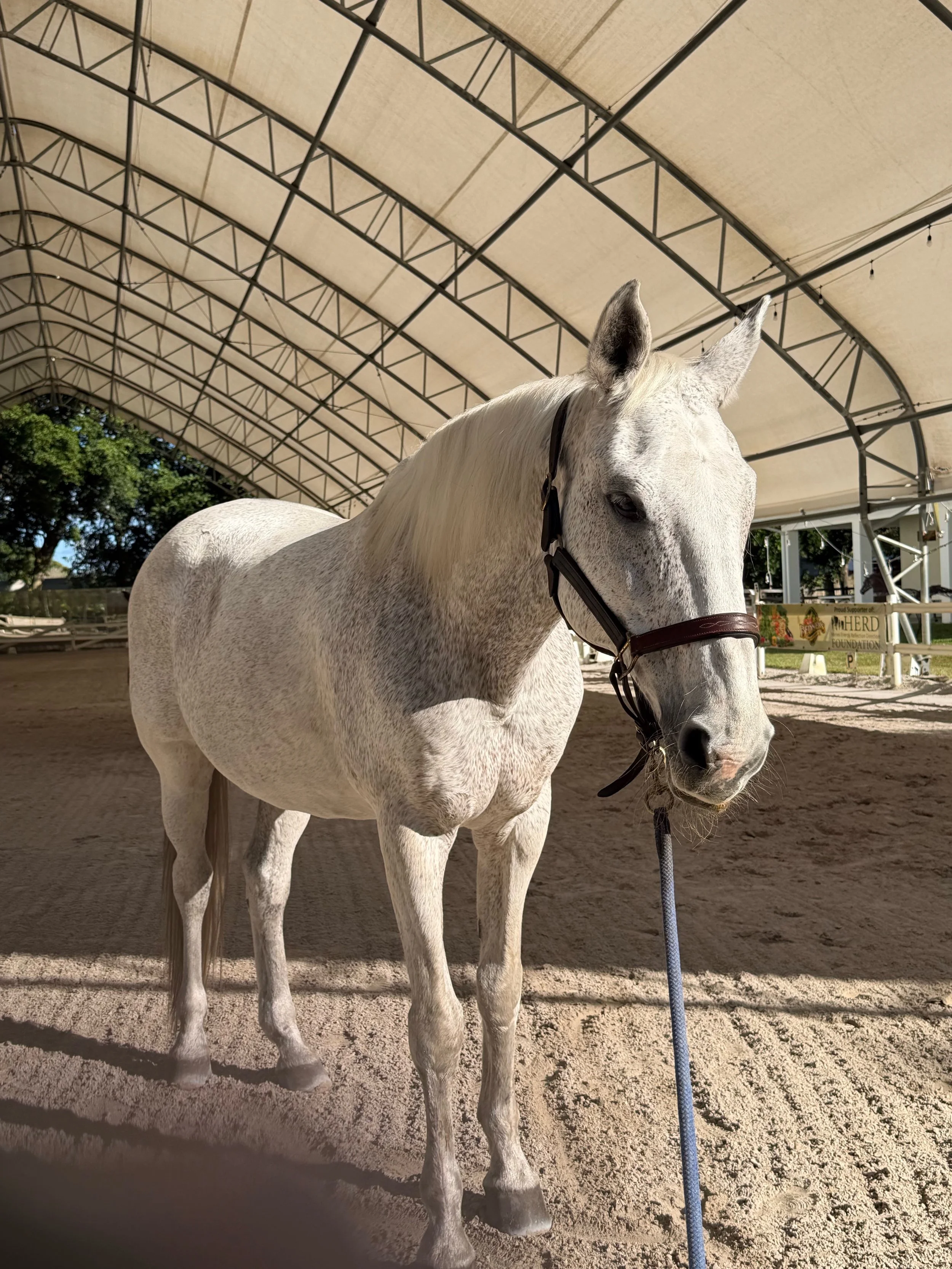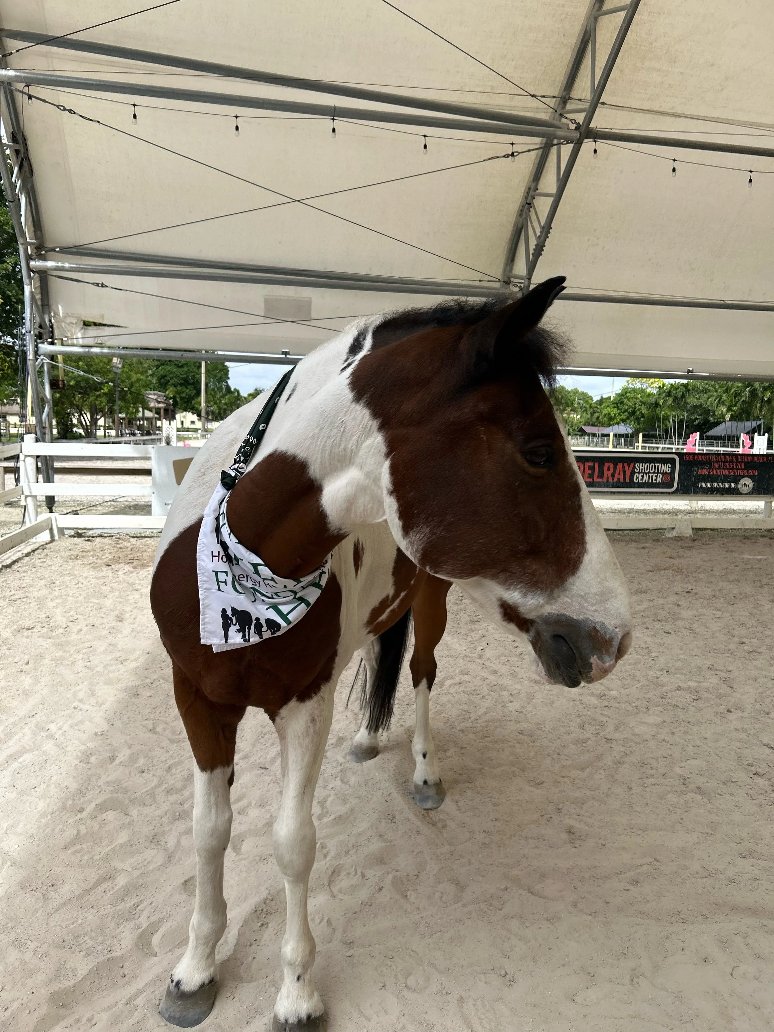 A retired racehorse, Satillo River, lived a very adventurous life! He enjoyed being a hunter jumper, fox hunting, and an all-around rockstar at Pine Creek Sporting Lodge in Okeechobee, Florida. Recently, he has been reunited with his family and enjoys being part of the HERD. Satillo touched the hearts of many and is greatly missed by both his horse and human herd.